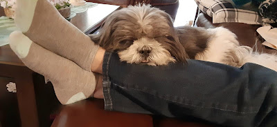 Mr. Bentley has been missing Jimmy as well. I took these photos the other day and put them up on the Shi Tzu Facebook page. Mr. Bentley continues to be well followed and very popular. The close-up on the right had this caption: Bentley here, "I think it best for all concerned, Mr. Cat, that you would turn around and go back to where you came from, just sayin..." There were over 50 comments. One, in particular, was really interesting to me. It was from a photographer who pointed out how I had staged the photo well with the worn cement and the aged beam matched to the gray coloring of his coat. Really? Well, how do you like that? I did all of that without even knowing it. I will tell you this about that. Had I tried to do something on that order it would not have been what it turned out to be, him sitting up on that beam, period, end of story. I do love it when I hear how well I did something I didn't know I had done. Know what I mean, Vern?