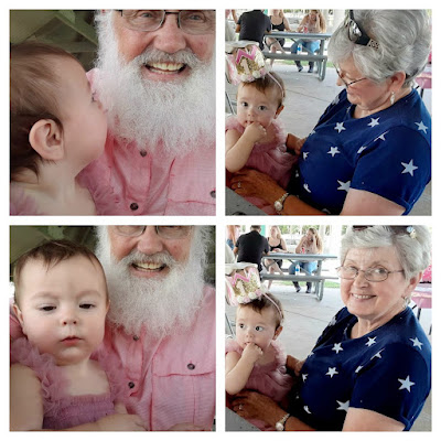 Last Saturday, we, along with a huge throng, (50 or more), gathered at a local park to celebrate the first birthday of our precious great-granddaughter, Ava Ramona. Maybe someday she will look at the photos and be really happy that so many folks showed up to sing Happy Birthday to her. Kudos to our granddaughter Tiffany and husband Brandon for hosting such a wonderful day. And, we also recognize Ava's big sister, Madelyn Joy, 11, who was such a great help in every facet of making the day special. What a great turnout on Labor Day Weekend! We pray for God's blessings and His best for this little one as she continues to grow and develop. Amen.